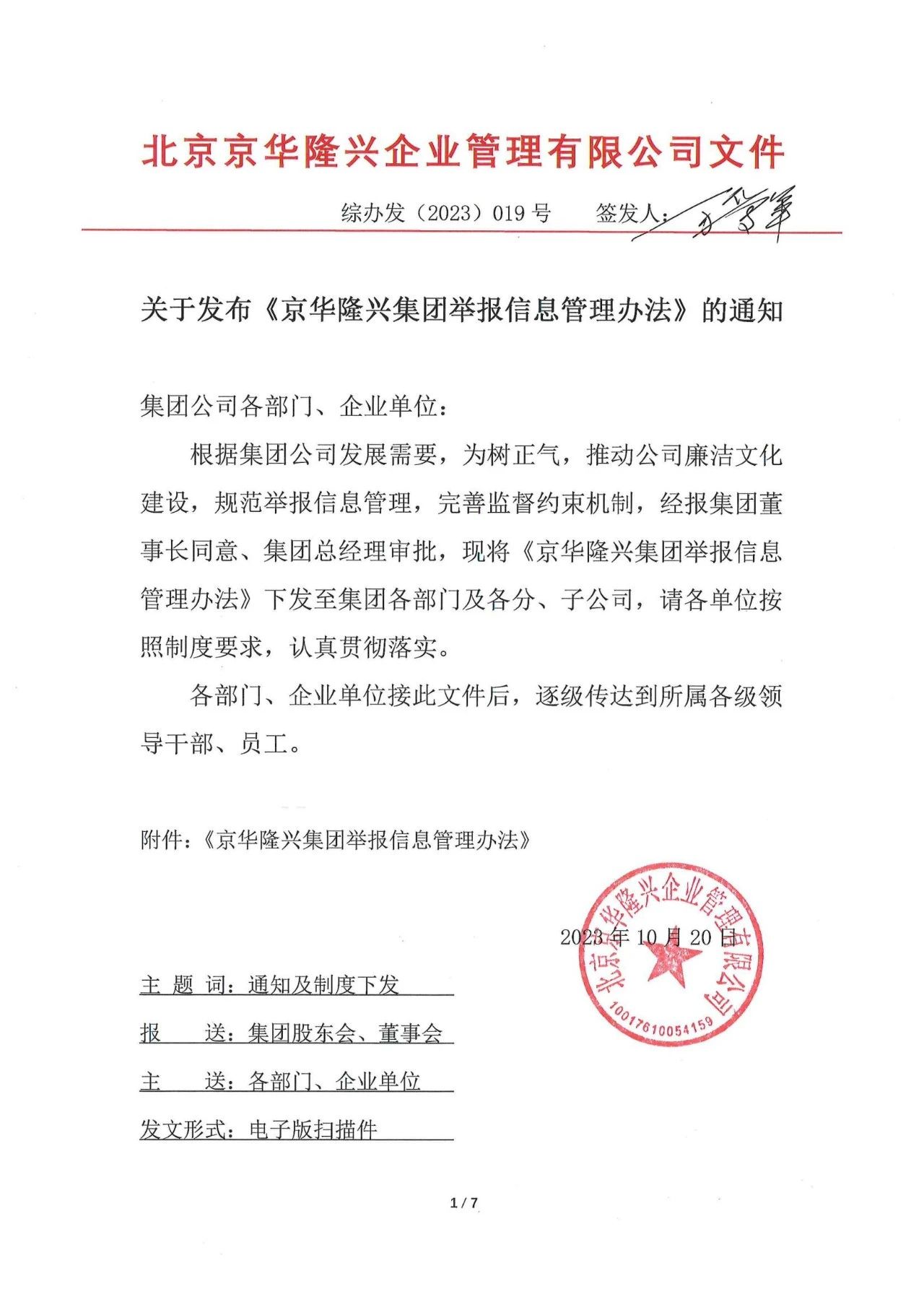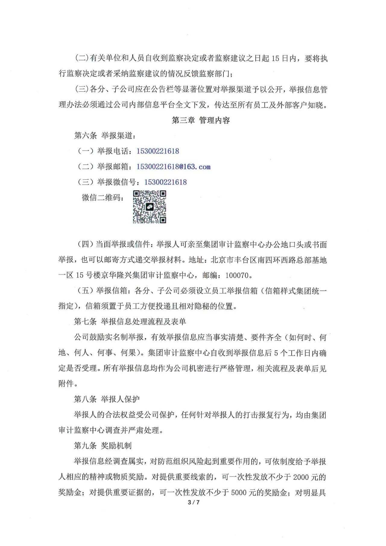《京華隆興集團(tuán)舉報(bào)信息管理辦法》