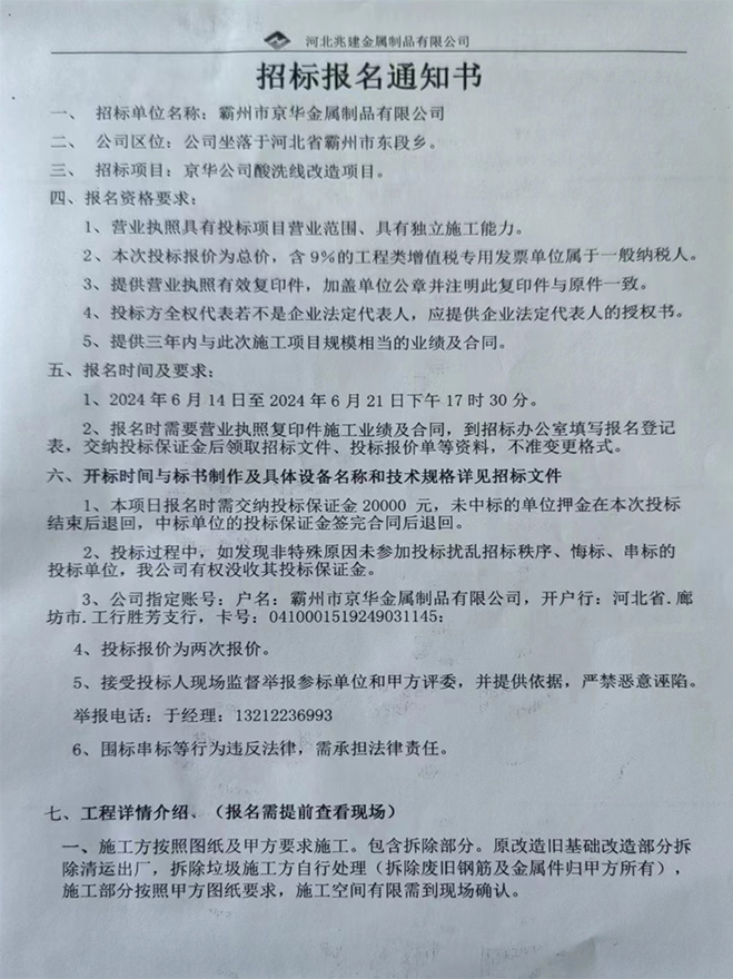 • 招標(biāo)業(yè)主: 河北兆建金屬制品有限公司