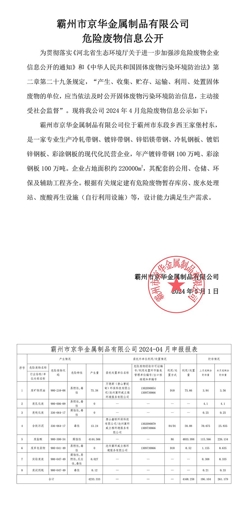 下一篇:24年5月危險(xiǎn)廢物信息公開(kāi)-霸州市京華金屬制品有限公司