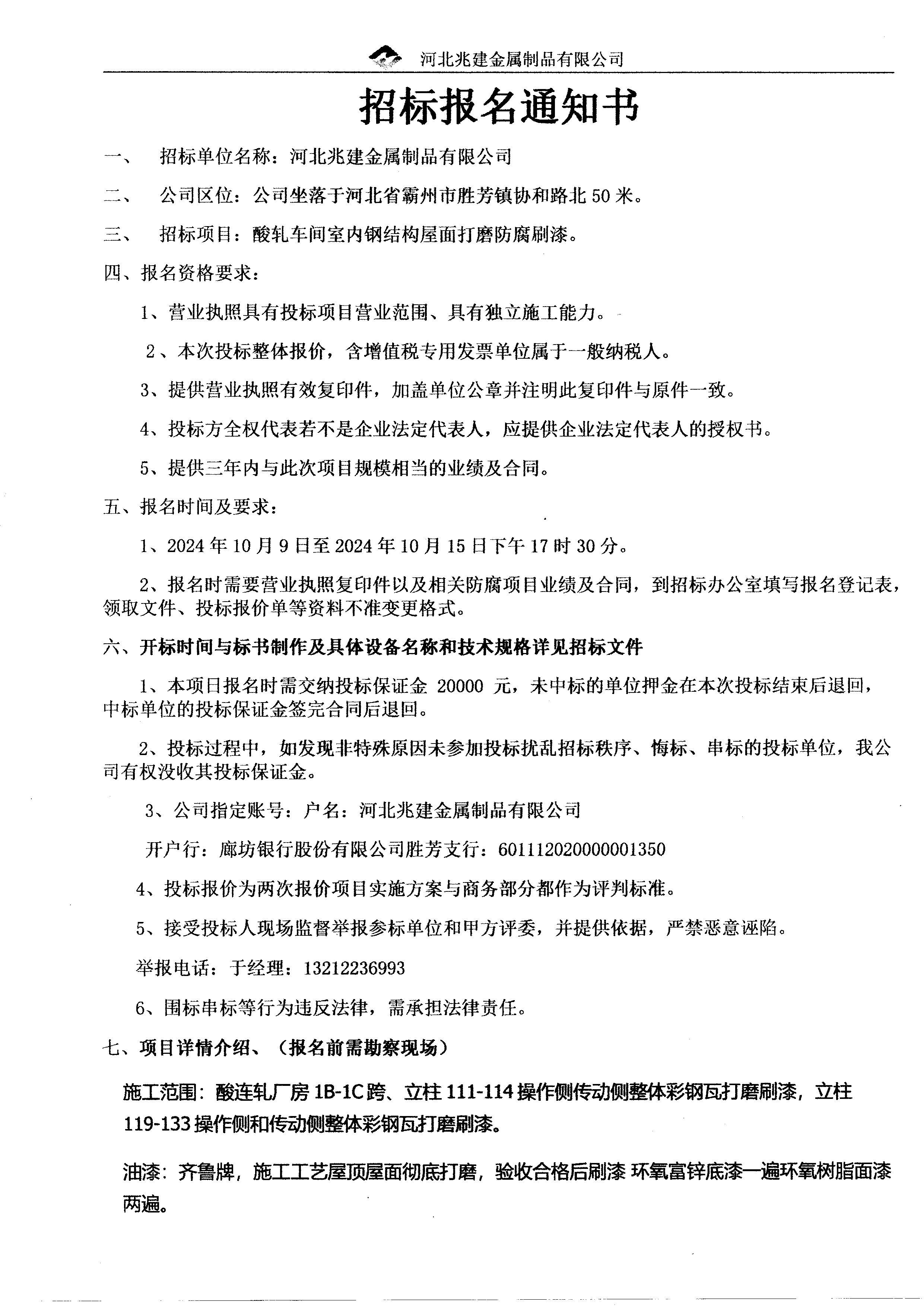 - 招標(biāo)業(yè)主: 河北兆建金屬制品有限公司
