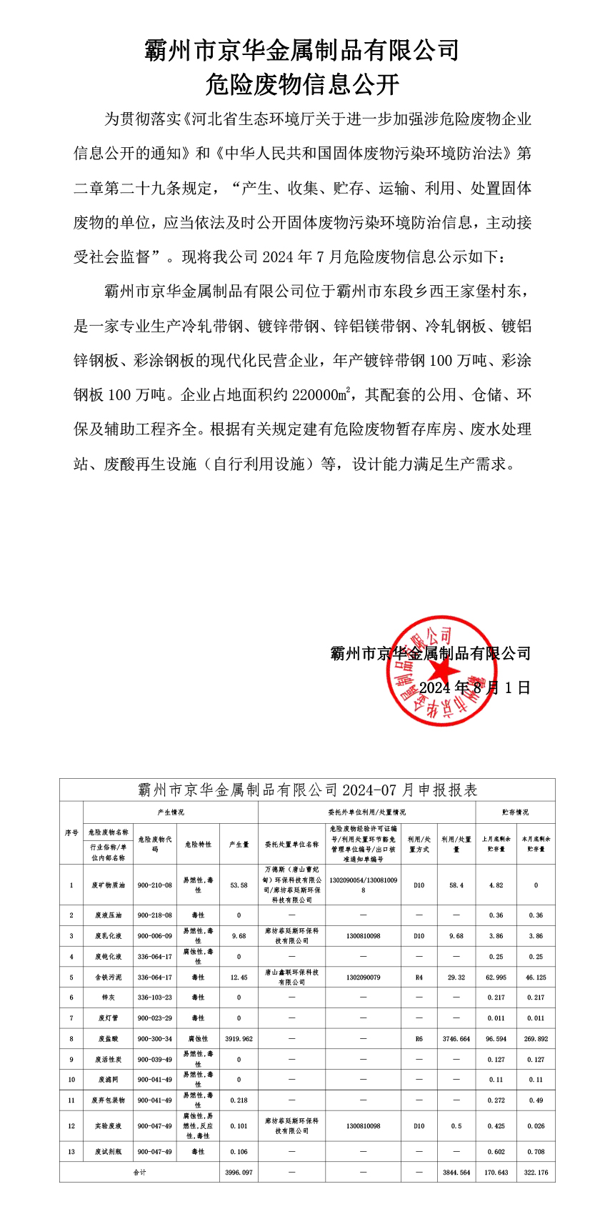 下一篇:24年8月危險(xiǎn)廢物信息公開-霸州市京華金屬制品有限公司