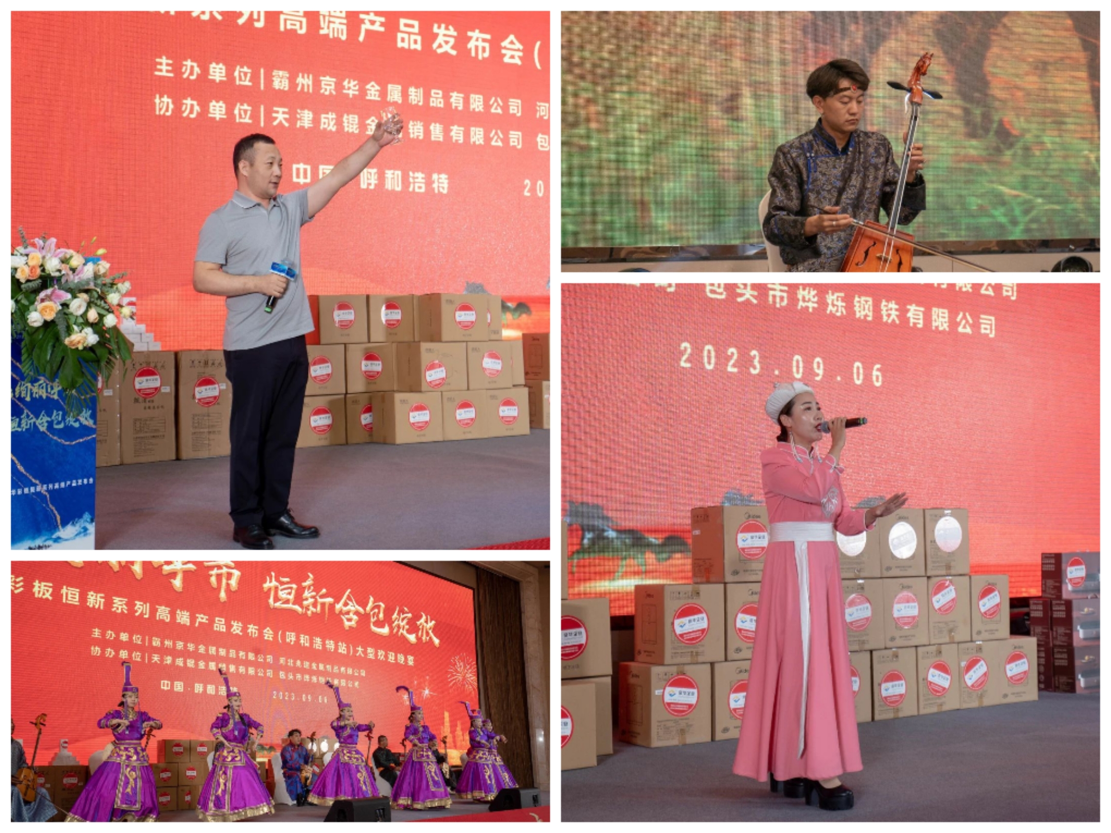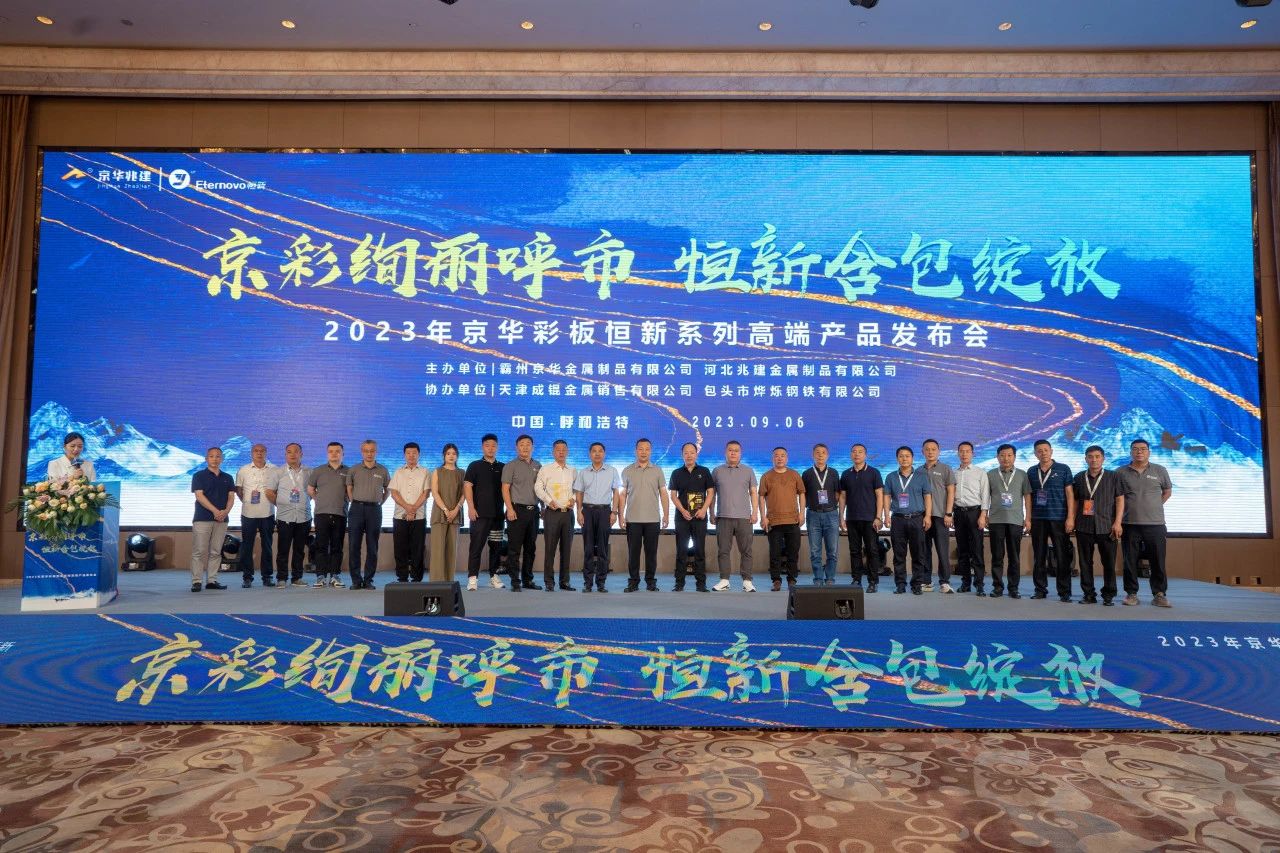 風吹草低見牛羊,金戈鐵馬入夢來。京華兆建公司恒新系列彩涂板推介會于2023年9月6日在呼和浩特巨華國際大酒店隆重舉行。此次盛會不僅展示了京華兆建公司卓越的企業(yè)文化,更彰顯了恒新系列彩涂板獨特的優(yōu)勢。京華兆建公司將與全國金屬涂鍍行業(yè)的合作伙伴緊密攜手,共同致力于打造高質(zhì)量產(chǎn)品。