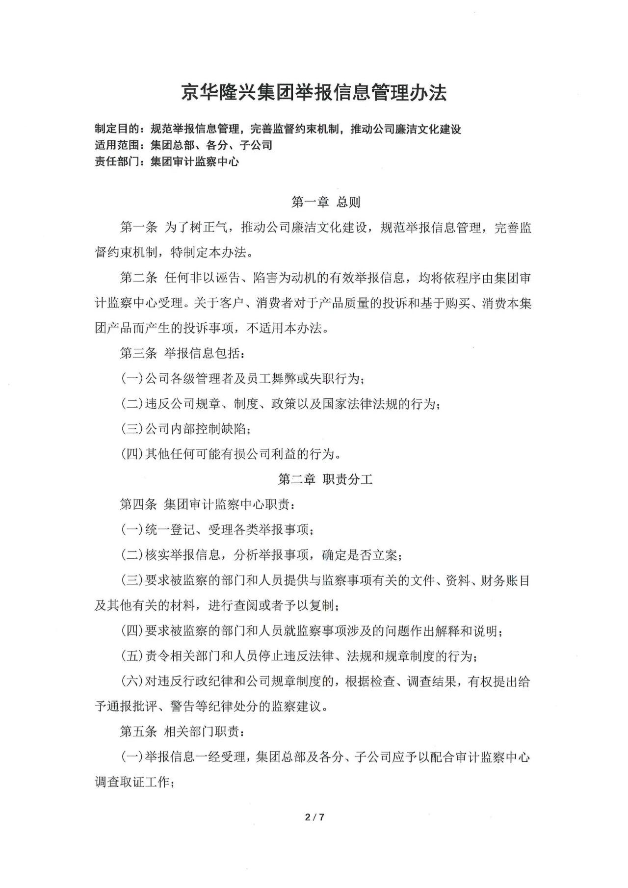 《京華隆興集團(tuán)舉報(bào)信息管理辦法》