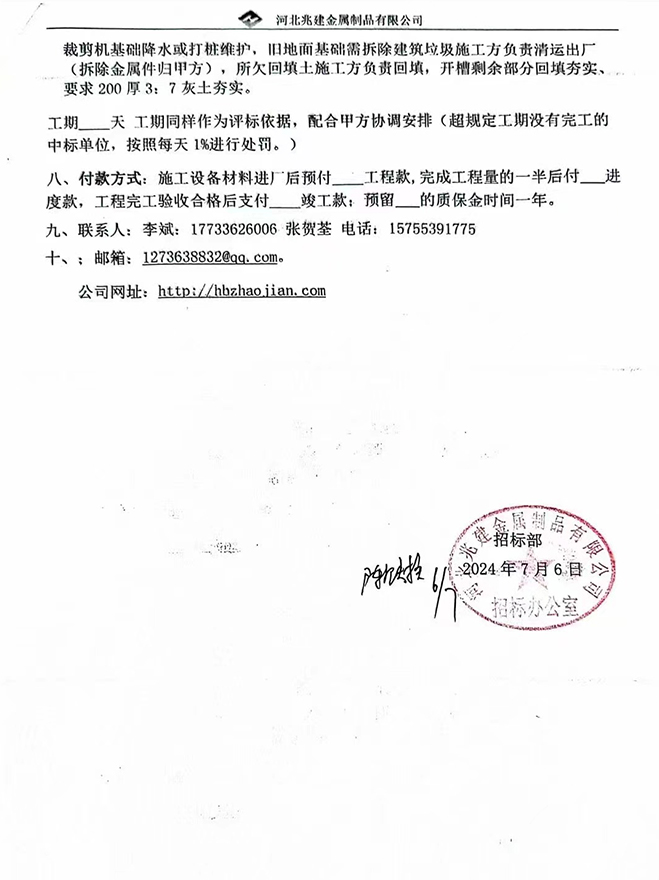 • 招標業(yè)主: 河北兆建金屬制品有限公司