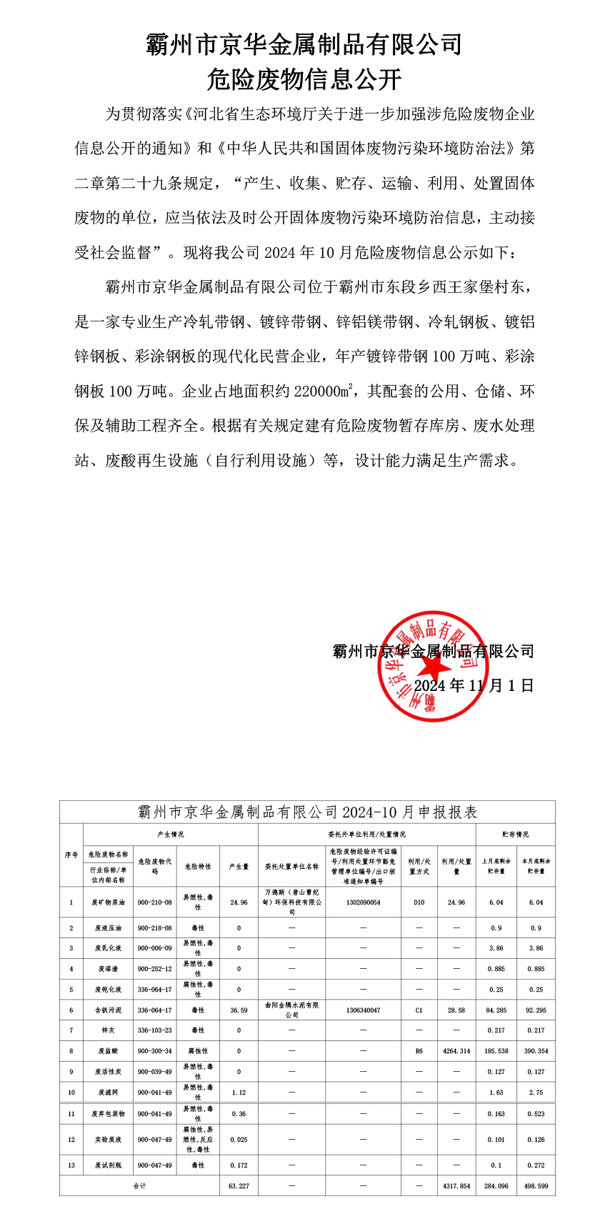 上一篇:24年9月危險(xiǎn)廢物信息公開-霸州市京華金屬制品有限公司