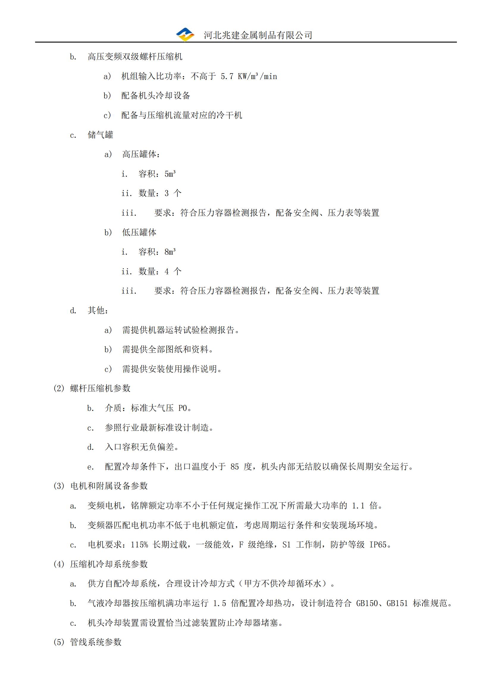 - 招標(biāo)業(yè)主: 河北兆建金屬制品有限公司
