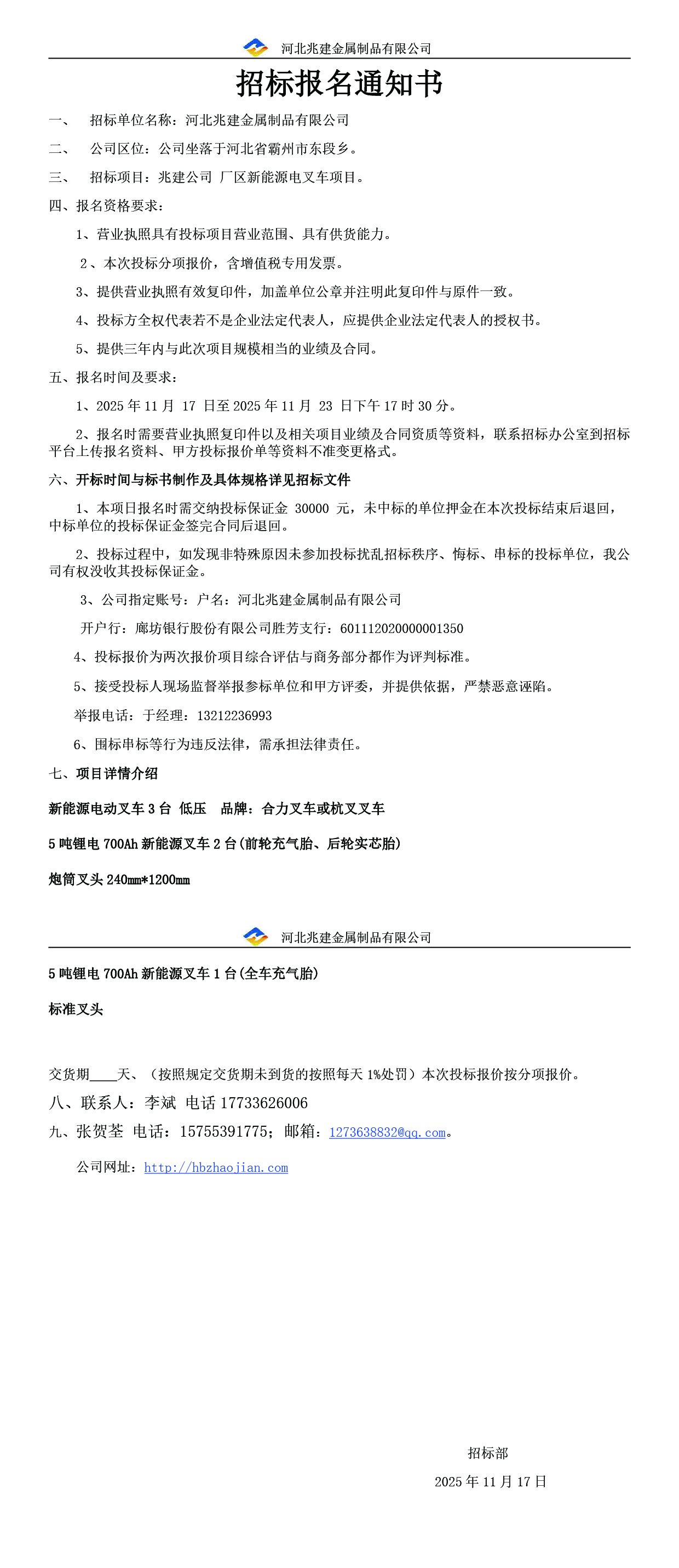 - 招標(biāo)業(yè)主: 河北兆建金屬制品有限公司